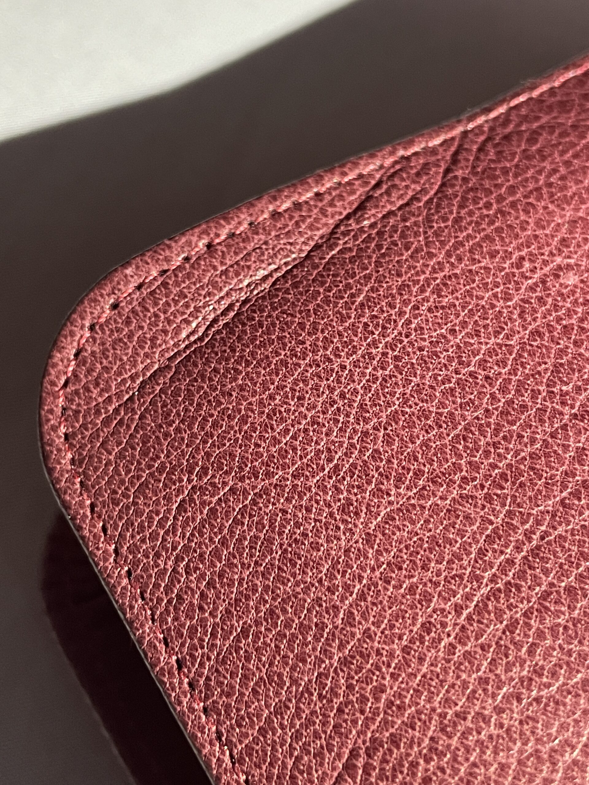 Finally, as mentioned above, this is a genuine top grain goatskin. Many other popular Bibles claim to be calfskin or even goatskin (and they are… kind of). However, what they do to keep costs down is to take the scraps of the calfskin and grind them up; they then compress these pieces together with an adhesive and emboss a grain on the top (similar to OSB boards or plywood).