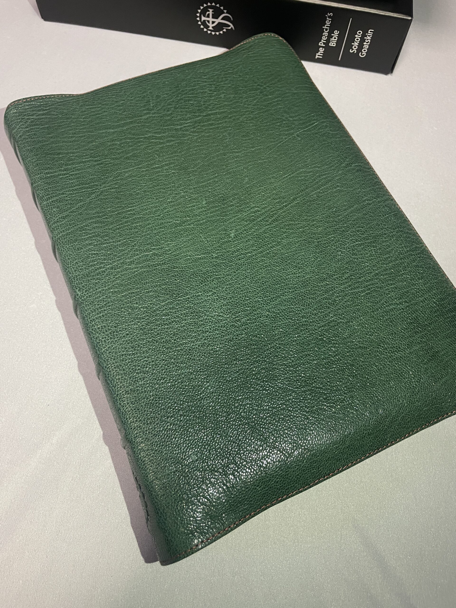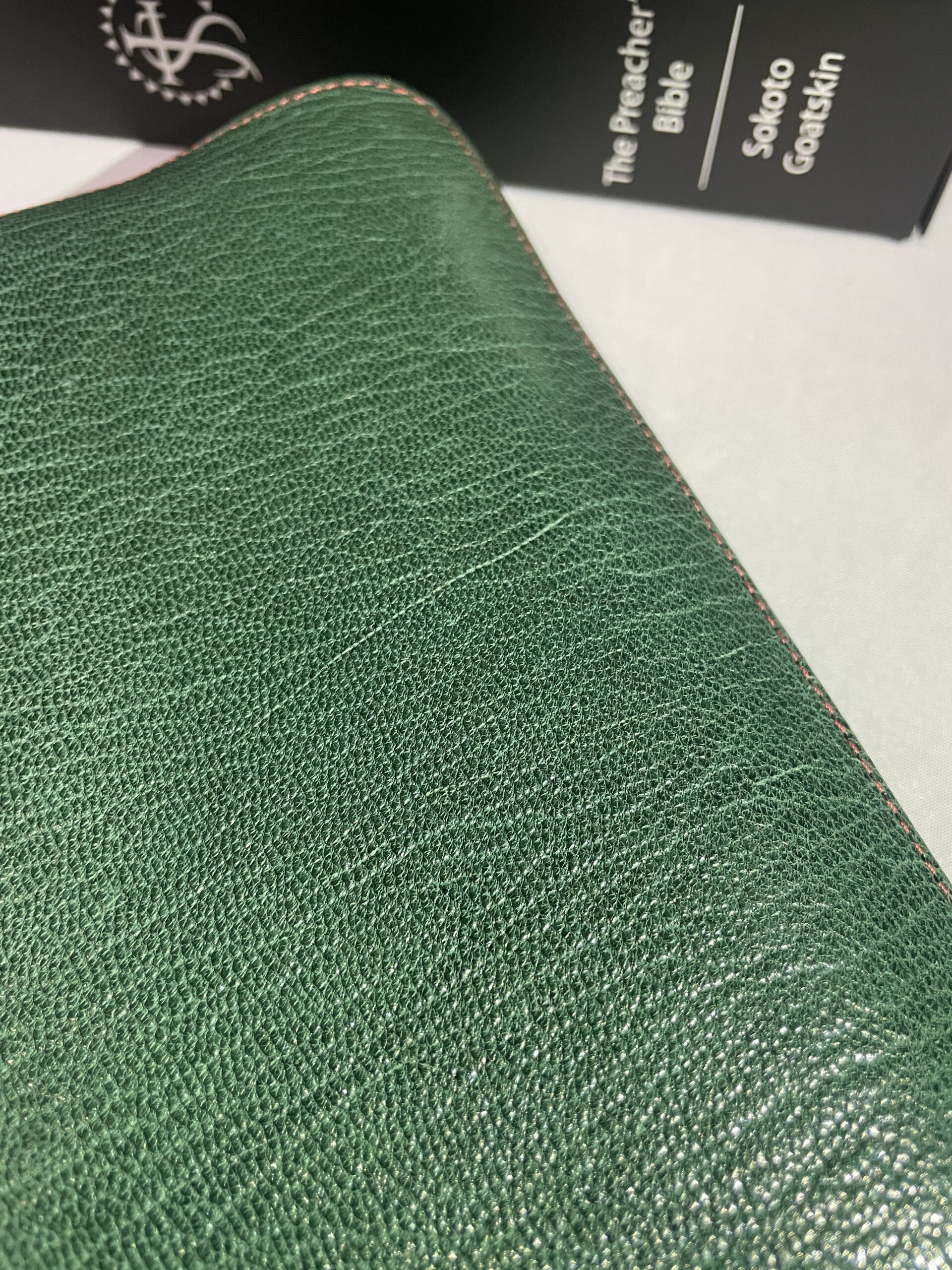 We have chosen to use a top/full grain Sokoto Goatskin from Nigeria for the Preacher’s Bible. This leather is superior to all other Bible leathers in many ways. The beauty of this natural grain is authentic – most all other leathers that show this grain (and most other grains as well) are artificially stamped. This embossing will weaken the leather. And it’s not completely genuine.