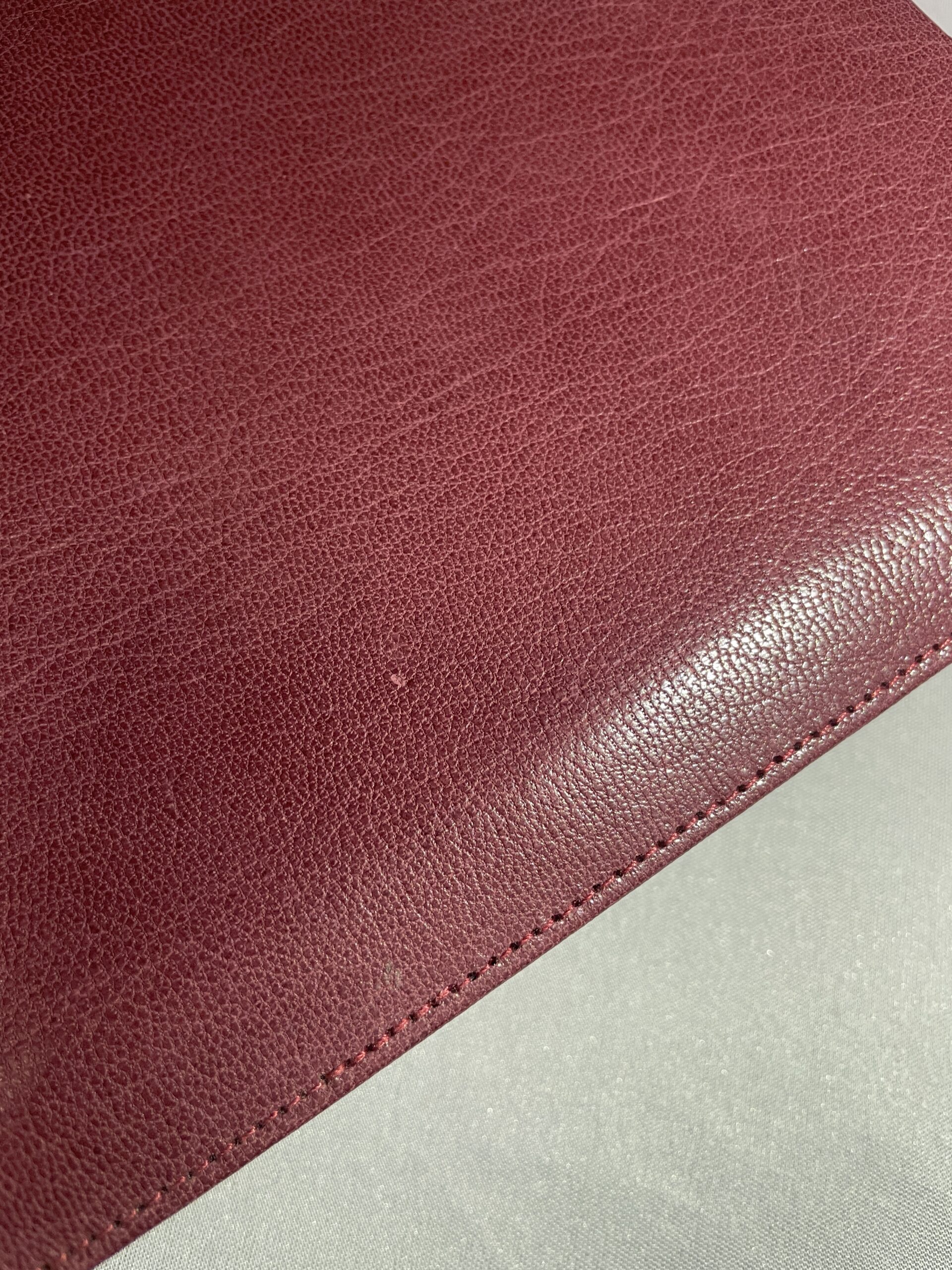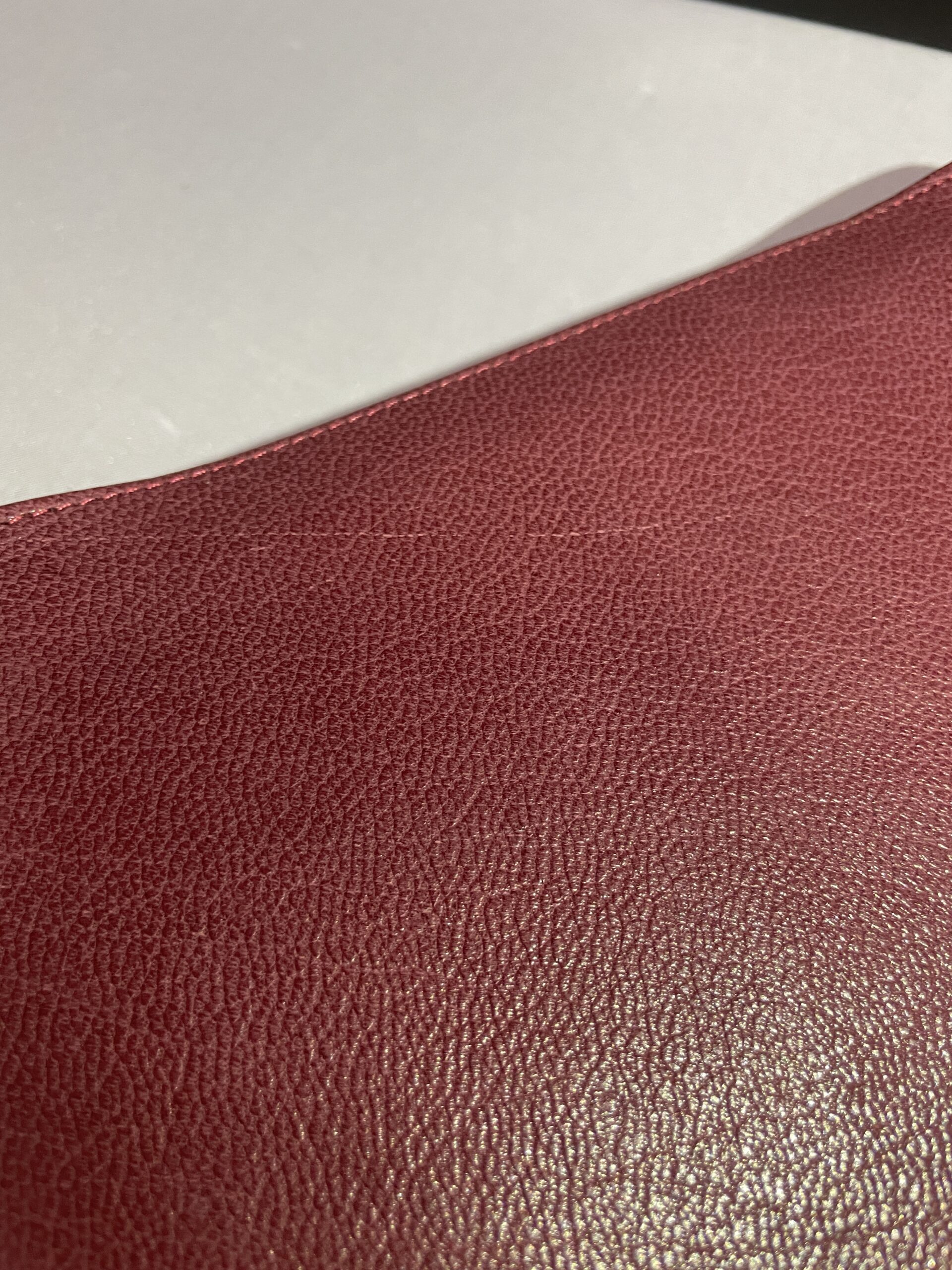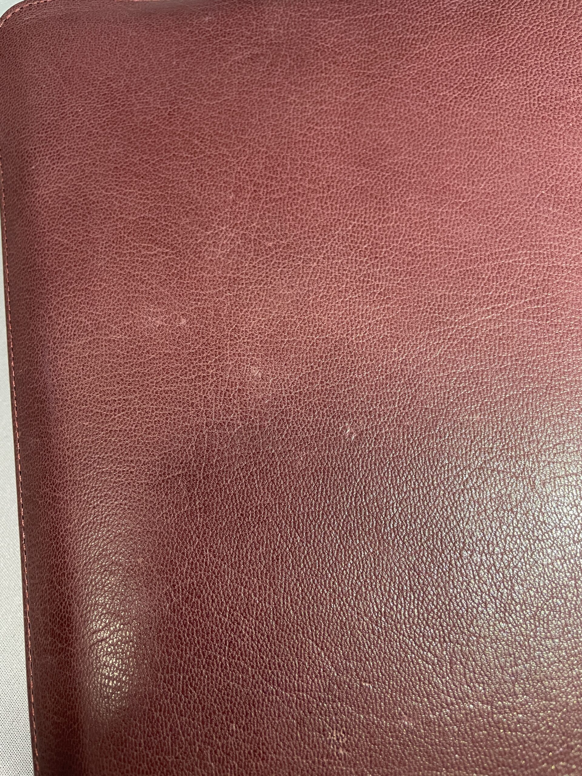 Finally, as mentioned above, this is a genuine top grain goatskin. Many other popular Bibles claim to be calfskin or even goatskin (and they are… kind of). However, what they do to keep costs down is to take the scraps of the calfskin and grind them up; they then compress these pieces together with an adhesive and emboss a grain on the top (similar to OSB boards or plywood).