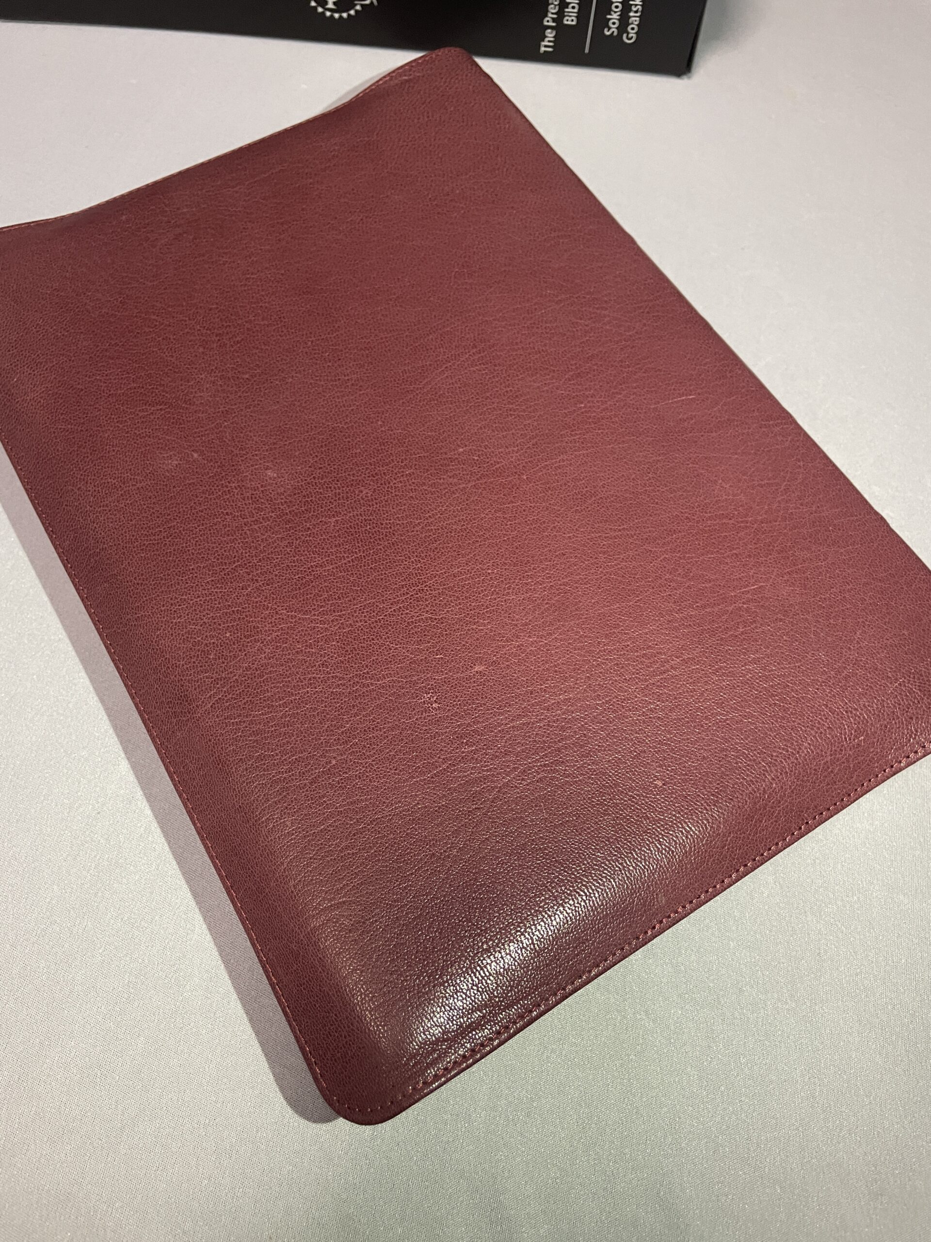 We have chosen to use a top/full grain Sokoto Goatskin from Nigeria for the Preacher’s Bible. This leather is superior to all other Bible leathers in many ways. The beauty of this natural grain is authentic – most all other leathers that show this grain (and most other grains as well) are artificially stamped. This embossing will weaken the leather. And it’s not completely genuine.