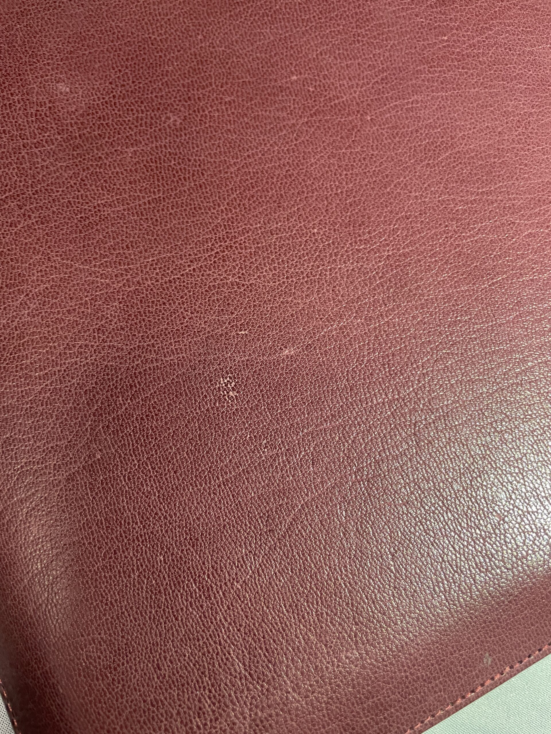This Bible has several blemishes in the leather grain on the front and back sides. It has no scuffing on the gilding. It had been originally marked with a serial number, but before sending it out, we noticed the blemishes. It is marked SEC to notate its seconds copy status.