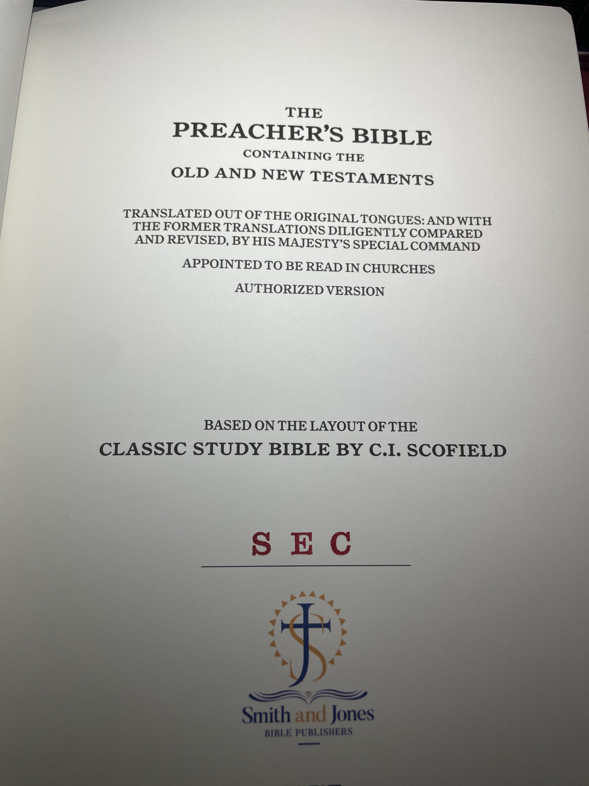 This Crimson Smith and Jones Preacher’s Bible is one of only three left available. These are the same quality Bibles with MINOR cosmetic imperfections. If you are wanting a Crimson Smith and Jones 1st edition PREACHER’s Bible, these auctions are your only chance. We do not plan to produce this 1st Edition in this color again. Any other chance at this color would have to be custom made.